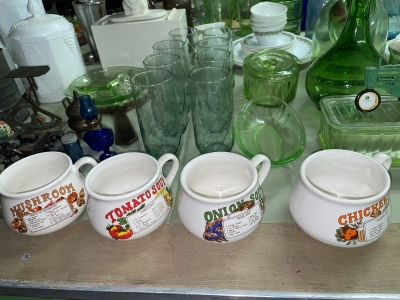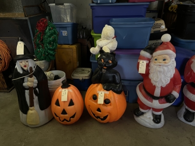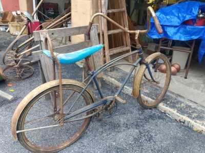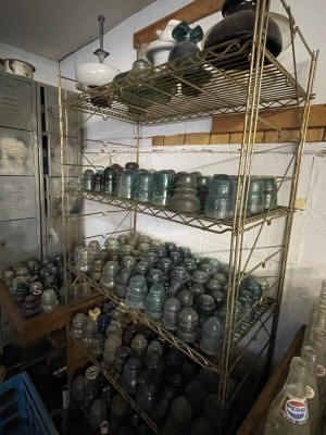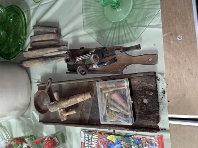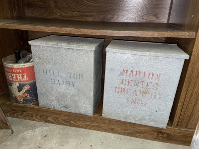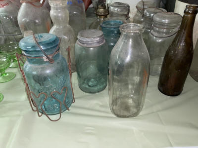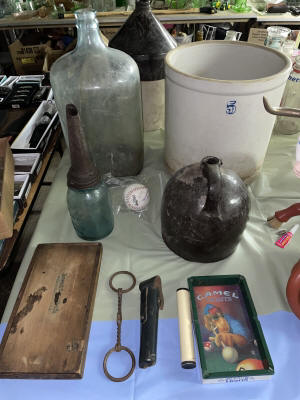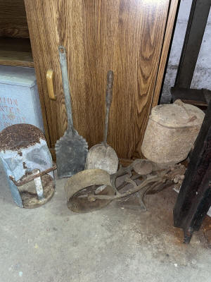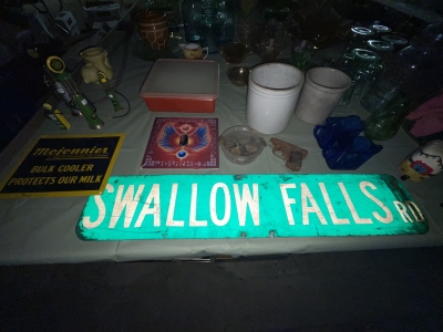 Antiques & Collectibles: China Cupboard, Rockers, Stools, Crocks, Large Insulators Collection, Lamps, Chairs, 4pc. Bedroom Set (Virginia House: Carved Cattle Oxen Wagon)(Bed, Vanity, Dresser, Chifforobe), Wringer Washer, Side Tables, Lamps (George & Martha Wahington, Oil Lamps, etc.), Wash Stand, Ash Tray Stands, Griswald Cast Iron Ware, 35 Speed Limit Sign, Swallow Falls Sign, Milk Sign, Cow Cast Iron Dinner Bell, Oak Rockers, Side Chairs, China Ware, Pitcher & Drinkware Glass Sets, Moon & Stairway, Large Knife Collection, Blue Fruit Jars (Various Sizes), Milk Bottles, Milk Crates, Wooden Sofa Crates, R.R. Lanterns, Bottles, Cigarette Lighters, Country Items, Glassware: Carnival, Cobalt, Depression, Milk Glass, Vasoline, etc.), Indiana County Historical Book, Comic Book: ( Peter Parker The Spectacular Spiderman: The Masked Marauder, The Terrible Tri-Man! And a Vault Full of Fear!), Rug Beater, Watches, Lighters, Harmonica, Advertisements, Medicine Bottles, Knife Sharpeners, Soda Glass Bottles, Graniteware, Collector Plates, Money Banks, Brassware, Scales, Ice Block Tongs, Walking Stick, Pocket Gun, Bottle Caps, Grinder, Metal Milk Boxes, Christmas Plastic Blow Mold Decorations, Domestic Cast Iron Stove, “Eugene Dietzgen Co.” Architectural Tool Set, Cultivators, Reel Mower, Bicycle ( w/ High Handlebars & Banana Seat), etc.