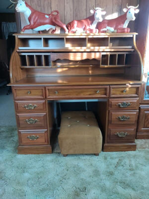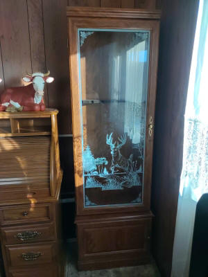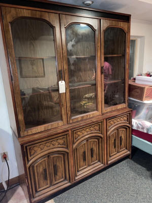 Households: Refrigerator, Gas Stove, Portable Dishwasher, Microwave, Table & Chairs, Breakfast Table, Kitchen Hutch, China Cupboards, Lighted Curio Cabinets & Display Cabinets, Dinette Buffet & Shelf, Chest Freezer, Utility Cabinets, Steel Wardrobes, Leather Recliner, Matching Sofa & Love Seat, Electric Lift Recliner, Sofa, End Tables, Coffee Tables, Corner Audio Stand, Swivel Rockers Bookshelves, Knee Hole Desk, Roll Top Desk, Window Air Conditioners, Gun Cabinet, Full Size Bed, Dressers, 4pc. Bedroom Set, TV’s, Lamps, Sewing Machine, Knick Knack Stands, Stools, Accent Stands, Ash Tray Stands, Magazine Basket, Pitcher & Bowl w/ Stand, Rockers, Glider Rockers, Wood Utility Cabinet Stand, High Chair, Twin Bed, Sofa, Twin Hospital Bed, Dehumidifier, Wall Shelves, Clocks, Mirrors, Blanket Chests, Electric Fireplace Heater, Child’s Hickory Rocket, Telescope & Tripod, Danielle Steel Book Collection, Cooling Fan, Time-Out Child’s Bench, Bissell Vacuum Sweeper, Hoover Scrubber, Cassette & CD Collection w/ Storage, Movies, Cat Tower, Pet Supplies, Paper Shredder, 3-Tier Plastic Storage Organizers, File Cabinet, Office Chairs, Wall Framed Pictures & Paintings, Eagle Shadow Box, Boy Scout Clothing, Kitchenware, Bakeware, Utensils, Bedding, Linens, Silk Flowers & Plants, Holiday Decorations, Correllware, Totes, Pet Carriers, Knick Knacks, Chicken Collection, Oil Lamps, Model Ship, Horse Drawn Wagon w/ Spool Storage, Jewelry Armoire, Rollator Walker, etc.