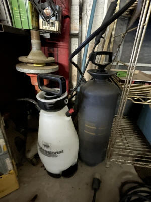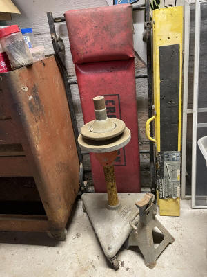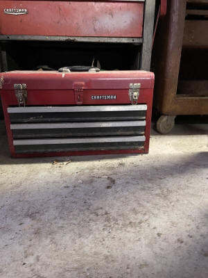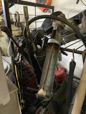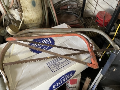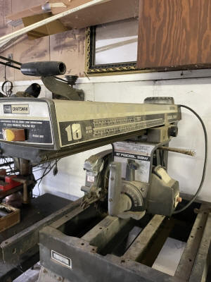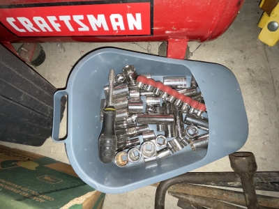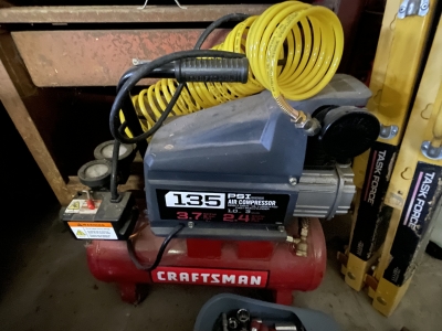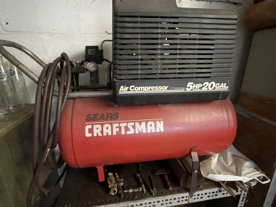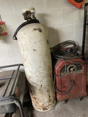 Shop/ Garage Items: 5HP/ 20gl. Air Compressor, Drill Press, 225 Lincoln Welder, Radial Arm Saw, 4400wt. Generator, 135psi Air Compressor, Oxygen Tank, Machinist Vise, Wheel Balancer, Auto Creeper, Bench Vise (Holland- Erie, Pa.), Tool Boxes, Bench Grinder, Chain Binders, Ball & Tail Piece Hitches, Saw Horses, Gas Cans, Battery Charger, Power & Hand Tools, Electrical- Hardware- Plumbing, Hand Truck, etc.