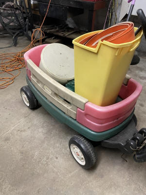 Outdoor Items: Canopy Swing, Patio Table & Chair Sets, Patio Items, Park Bench, Gas Grills, Wrought Iron Chairs, Canopy Swing, Garden & Potting Soil, Weed Eater, Leaf Blower, Rototiller, Apple Picker, Hose & Reel, RV Wheel Covers, Little Tikes Wagon, Chain Saw Pruner, Weed Sprayer, Garden Hand Tools, Weed Trimmer, Wheel Barrel, Electric Pressure Washer, Rods & Reels, Hunting & Fishing misc., etc.